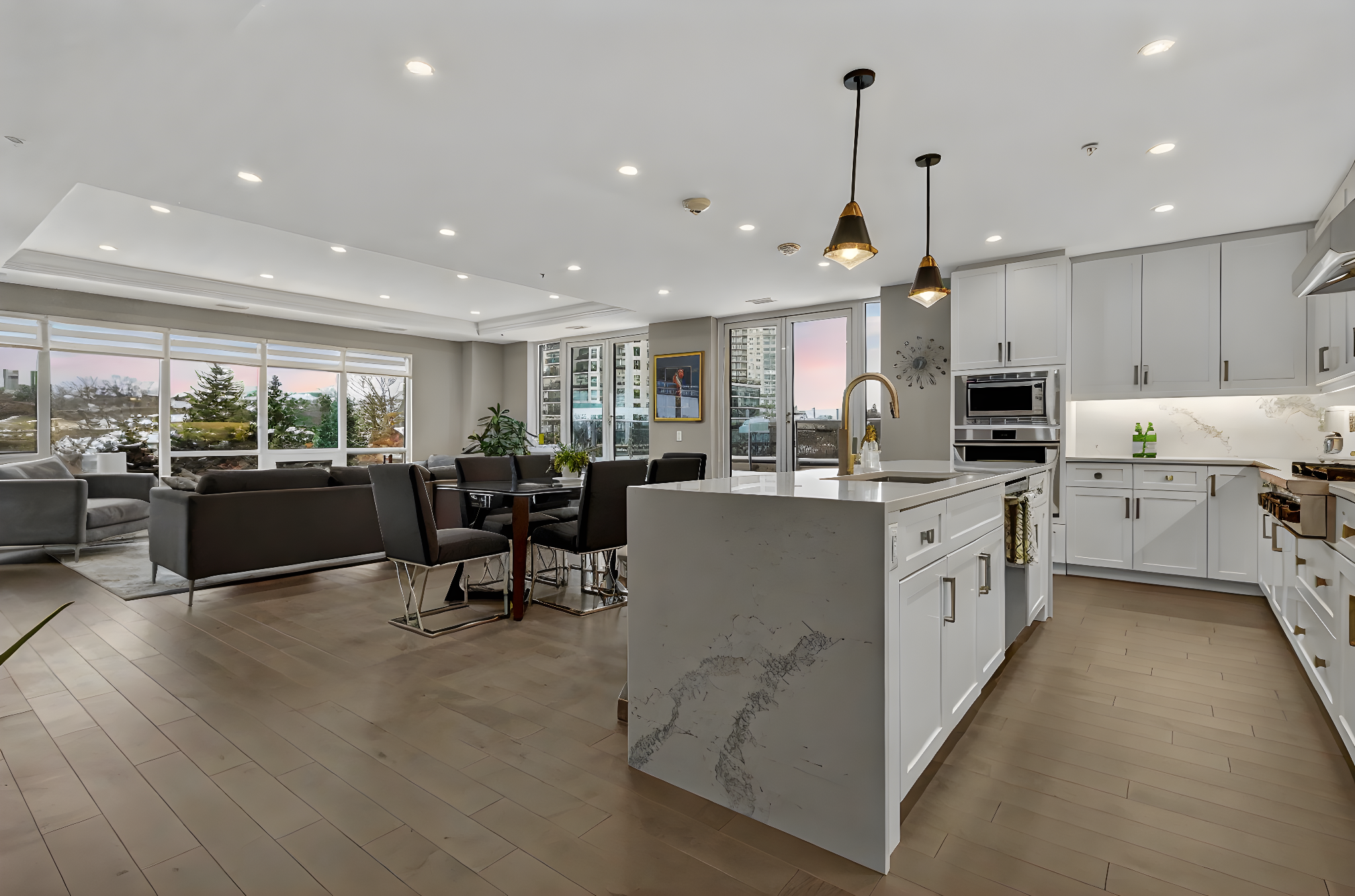 The most coveted River Residence in the entire development is now available for sale. This premier suite offers 3,138 square feet of refined living, including 1,090 square feet of terraces with 110 feet of uninterrupted river and city views. The expansive west-facing windows frame breathtaking sunsets every evening, turning the sky into a daily masterpiece of color and light. The entry sets the tone immediately. Coffered ceilings define an impressive foyer and introduce the level of craftsmanship carried throughout the home. The living room is expansive and bright, framed by oversized windows and anchored by a Dimplex Electric fireplace-an elevated space designed for both quiet evenings and sophisticated entertaining.The kitchen is a true gourmet workspace, equipped with Fisher & Paykel stainless steel appliances, a 6-burner gas rangetop, wall-mount oven, quartz countertops, shaker cabinetry, and a waterfall island. Every detail supports both function and style.The primary ensuite delivers a spa-grade experience: a deep soaker tub, double sinks, premium fixtures, and a mosaic shower floor. Additional upgrades include a Samsung stacked washer/dryer, Panasonic microwave, recessed lighting in principal rooms, brushed-nickel hardware, and 5-inch-wide maple grey flooring.Two expansive terraces extend your living space outdoors, providing a private front-row view of the river-ideal for morning coffee, evening cocktails, or larger-scale entertaining.Practical advantages include three parking spaces, two heated storage lockers, and full access to Metalworks' exclusive amenities, including the private speakeasy. Location advantages: 10-minute walk or 3-minute drive to the GO Station 15 minutes to Highway 401 5-minute drive to the University of Guelph 1 hour to Pearson Airport.